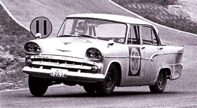 多賀は前稿のように、大学自動車部出身で、トヨタ自販が応募したドライバーの中から、式場同様に契約金で専属になったドライバー。しばらくワークスにいて、その後TMSC(トヨタモータースポーツクラブ)の会長になっている。K・スイッシャーは米空軍少佐で朝鮮戦争でジェット戦闘機のパイロットだが、本国でもアマチュアレースで鳴らしていた人らしい。その後もベレルでマカオGPに出場し、トラブルがでたが、「チームのために」完走を心がけ、チーム賞を取っている。もちろん、作戦が終わったら、アメリカに戻った。外車を持ち込んだ吉田隆郎はわからないが外車が手に入る人だ。第2回には、戦闘力の高いロータス・コルティナをエントリーしている。それ以降はダイハツのワークスで活動した。ドン・ニコルズは軍人ではないが、軍人の需要目当てか、これからの日本の市場目当てか、レース用部品等を販売に日本に一時的に居を構えた在日米人。アメリカの意向で、富士スピードウェイ創設に初期に関わり、日産のプロトタイプレーシングカーR381のエンジンが間に合わないというときにシボレーのエンジンを輸入した。ローラでも同じレースにR・クラークの変名で出ている。のちにアメリカに戻り、シャドウ・レーシングを立ち上げ、ペタンコなCan-Amマシンでレース。イギリスに本部を移し、F1を始める。この辺のことはWikipediaのシャドー・レーシングに出ているよ。