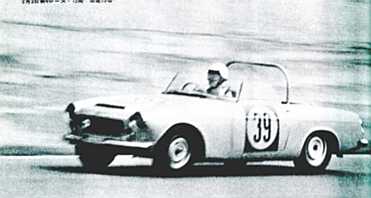 「国内」とは、国産ではなく、「国内にある」という意味らしい。同様に、外人選手名も、招待選手以外は、在日軍人や在日商売人のほぼアメリカ人だろう。4速の改造コンテッサが台数不明でコンテッサ計7台。105マイルクラブの立原義次と山西喜美夫がWエントリー。オースチン・ヒーレー・スプライト(カニ目じゃない時代だが、1960年までの古いカニ目もあった。画像検索で判明)が3台。VANジャケット石津謙介の息子の石津祐介と吉田土岐夫と喜多村誠。外車は小さくてもボンボンだろうなぁ。石津のスプライトは写真では後期型だ。DKW1000スポーツは井口のぼるの車ごとWエントリーらしい。なんでツーリングカーとスポーツカーの2つに出れたのか不明。(JAFリザルトではDKW1000とDKW 1000とある)フェアレディはSPLが2台。SPL310と言ったら、輸出仕様左ハンドルのことだが、名前がSP310で変わらないフェアレディは1.2リッターE型エンジンから、1.5リッターG型エンジンにモデルチェンジされており、G型はこのクラスに入らないから、古いE型の方らしい。当時からスポーツカーを乗り回すのもボンボンだ。お嬢様もいるけど。ポルシェ356も1台。911前の4気筒ポルシェは、レースで各クラスに出場できるよう、小さな排気量から中間排気量まで出していた(1100、1300、1500、1600)。これは1957年以前356Aの1300ccと思われる(1100ccも古く1年間輸入したが)。他にNSU・シュポルト・プリンツが2台。NSUプリンツはヨーロッパの小さい箱レースでは活躍していた方で、これはスポーツバージョンらしい。プリンツのエンジンを使用して、ミュンヒという怪物オートバイが作られたこともある。MGのミジェットも1台。これは新型ヒーレー・スプライト新型の兄弟車。